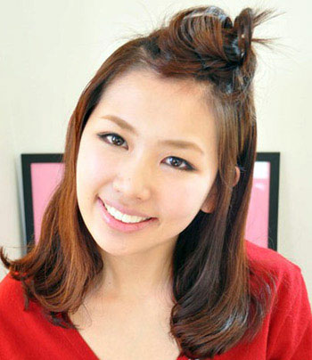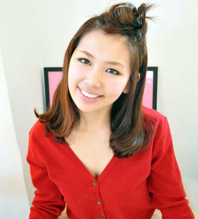 長(zhǎng)長(zhǎng)的劉海被綰成好看的圖案,蓬松有致,將臉蛋完全露出來(lái),清新干凈又甜美可愛(ài),很適合夏天的一款發(fā)型哦。