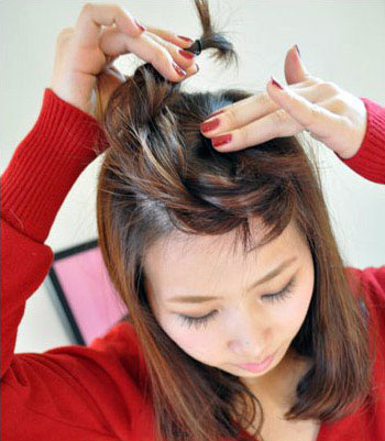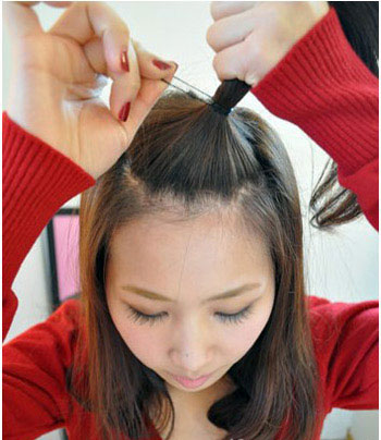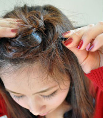 將劉海沿著劉海綁發(fā)的結(jié)點(diǎn)纏繞一圈。