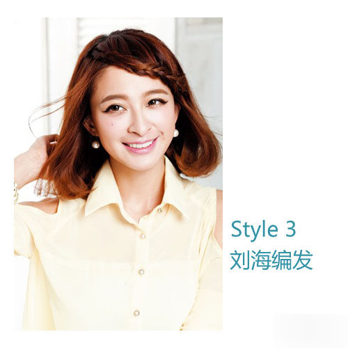 在明星頭上,最常出現(xiàn)的非劉海編莫屬。這種編發(fā)視覺變化多,可編出有劉海、無劉海2 種感覺,有劉海的較能修飾臉型。