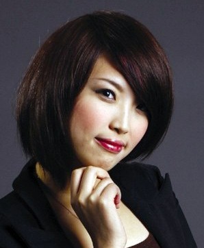 年輕OL,不張揚(yáng),要低調(diào),發(fā)色可采用近似黑色的冷棕色漸變色系,簡(jiǎn)潔大氣的直發(fā)中短發(fā),劉海反傳統(tǒng)地梳向短的一側(cè),而特別的不對(duì)稱感覺,是發(fā)尾以一條大斜線,由左耳垂下貫穿至右耳垂下。