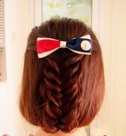 最后,選擇自己喜歡的漂亮發(fā)飾,夾在魚(yú)骨辮上就大功告成啦!是不是相當(dāng)簡(jiǎn)單呢?MM們快來(lái)親手試一試吧!