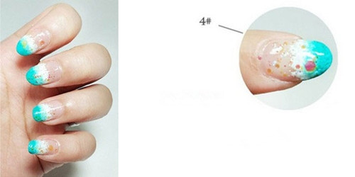 步驟四:最后刷上帶亮片的透明藍(lán)色的甲油就完成了,很簡(jiǎn)單吧!