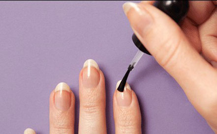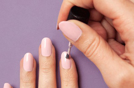 步驟二:在指甲上涂上一層裸色或者淡粉色的指甲油。