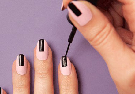 步驟三:再用指甲油勾畫出一個(gè)黑色的長(zhǎng)方形圖案。