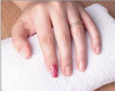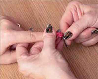 第五步:進行打磨,將多余的指甲貼磨走。