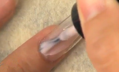 第一步:在指甲表面均勻涂抹珠光色底油。