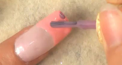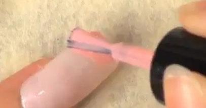 第二步:在指甲前端涂抹粉色甲油。