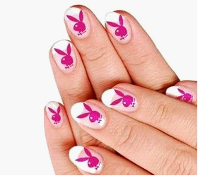 指尖上的PLAY BOY小兔子你見過嗎?這是一款用粉紅色作為底色的美甲圖案,先用白色指甲油在指尖繪上一輪彎月,再在上面用玫紅色精心描繪出PLAY BOY小兔子。這是件技術(shù)活,需要很大的耐心和高深的彩繪功力喔。(本文由上海美甲學(xué)校整理編輯)