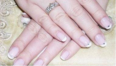 圓弧形的法式美甲增加了溫柔的感覺,在微笑線上貼一顆貼鉆,透著俏皮,令人眼前一亮。