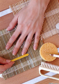 先在水溫約40℃左右的水中滴入適量橄欖油,把雙手洗凈后浸泡10~15分鐘軟化角質(zhì),然后取適量磨砂膏或去死皮霜均勻涂抹手部,尤其著重肘關(guān)節(jié)和指關(guān)節(jié)處。輕輕畫圈按摩2至3分鐘,加強(qiáng)指甲周圍易產(chǎn)生硬皮和倒刺的部位按摩,兩三分鐘后,推出污垢和死皮。接著洗凈或用熱毛巾擦凈。除了有清潔作用外,還可使皮膚變軟,軟化角質(zhì)層。