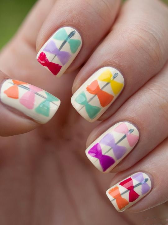 青春糖果蝴蝶結(jié),很甜心的一款美甲圖片呢!