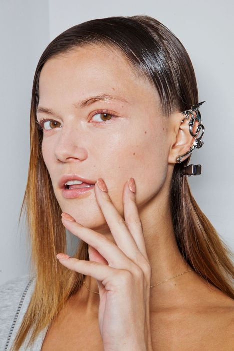 Philip Lim 優(yōu)雅裸灰雙色 也許裸色和灰色是設計師最青睞的兩種顏色,于是美甲師將它們以“陰陽臉”的方式結合在一起。最常見的是兩種飽和撞色打造的雙色美甲,但是Philip Lim秀場的兩種相近色似乎看起來也優(yōu)雅十足。
