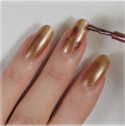 1.以金色指甲油為底色。