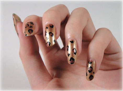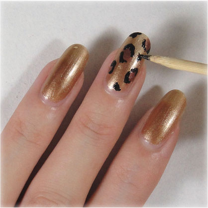2.咖啡色指甲油直接用刷頭點上幾個不規(guī)則大點點。
