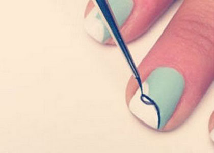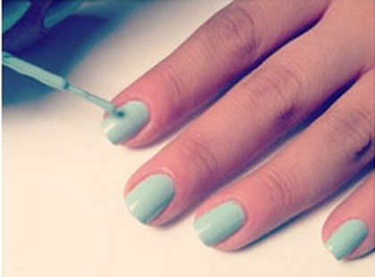 所需物品:薄荷色或藍(lán)綠色甲油、色甲油、黑色甲油、極細(xì)刷、亮甲油。