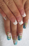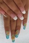 (7)    用塑料紙條壓膜,把絲綢緊緊固定在指甲表面
