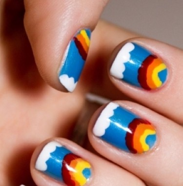 彩虹美甲,還有白色云彩鑲邊,會不會讓你想起幼兒園里那面總是畫著彩虹的漫畫墻,還有你童年的趣事囧事?