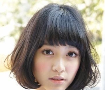 這款黑色的齊劉海短發(fā)梨花頭,在齊劉海的部分給人一種非常甜美又很清麗脫俗的感覺,特別是加上黑色發(fā)色后,發(fā)尾隨意自然的內(nèi)扣卷翹感大大增加了整個發(fā)型的美感,讓圓臉也變得甜美又可人。