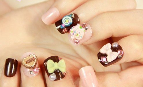 可愛小熊和樹脂糖果的美妙搭配,萌系mm一定要嘗試的一款,小編自己也把圖片保存準備去美甲店做哦!/