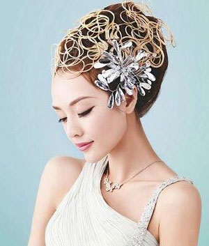 增加夢幻的海底精靈氣息。選擇造型奢華的發(fā)飾,能與同樣閃亮的服裝完美 呼應(yīng)。用發(fā)片在額頭上纏繞固定住,最后使用定型產(chǎn)品固定,這樣哪怕是海風(fēng)再大等情況,都不會尷尬。