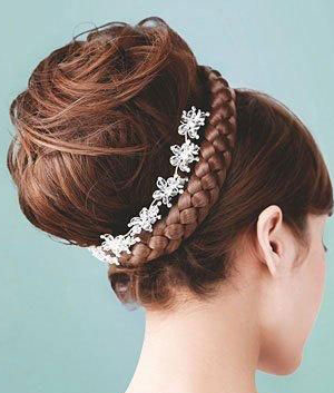 簡單的盤發(fā)當(dāng)然不能滿足既清爽還要很性感的需求。梳一個高高的發(fā)髻,將水晶發(fā)飾纏繞住發(fā)包,露出纖細(xì)的脖頸就是讓整個發(fā)型線條明顯略帶性感的小心機(jī)。