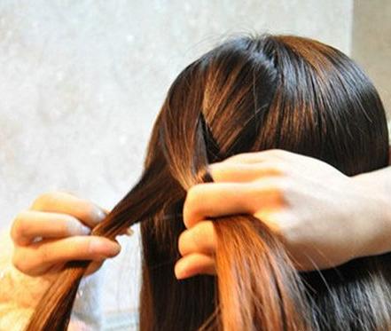 step1:先把頭發(fā)梳理整齊,然后從后面把頭發(fā)分成兩半。