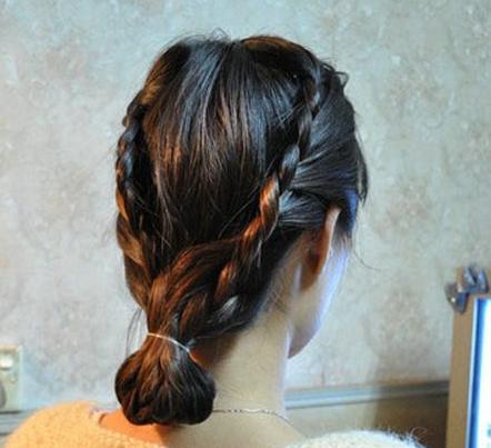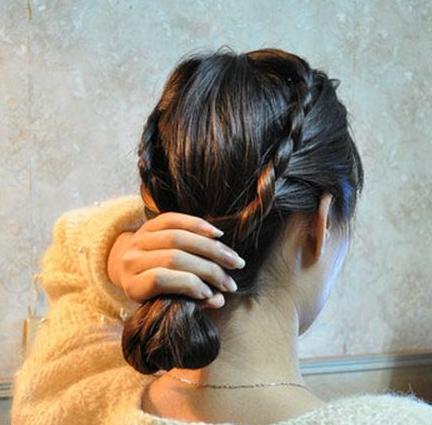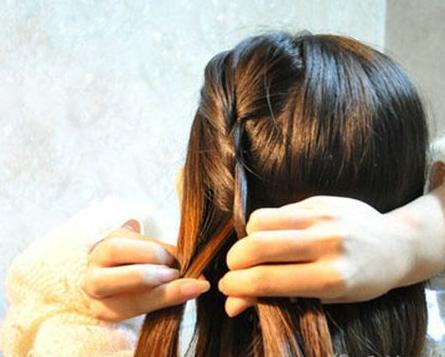 step2:先把一側(cè)的頭發(fā)拿起來,按自己的喜好順序左右隨意。