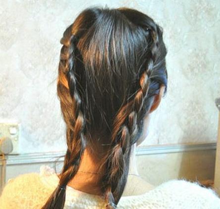 step3:可以先用3個(gè)手指把拿起的發(fā)片分開3段,按照3股辮子的順序,慢慢編織。
