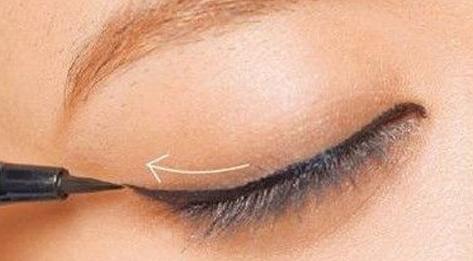 Step3:找到眼線液筆沿著睫毛根部從眼頭往眼尾勾勒,在眼尾處稍微上揚達到眼型漂亮的目的。