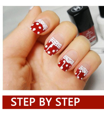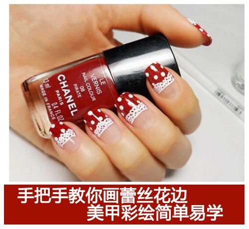 運用畫蕾絲花邊的小技巧可以使美甲錦上添花,自己也可以做到,漂亮的正紅色mix白色蕾絲花邊會非常甜美,下面就讓小編為你帶來這款蕾絲花邊可愛美甲的美甲彩繪教程。