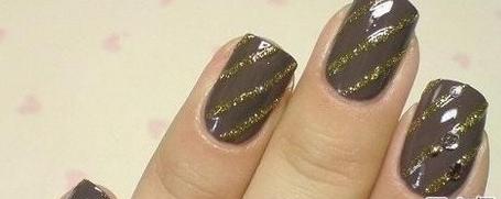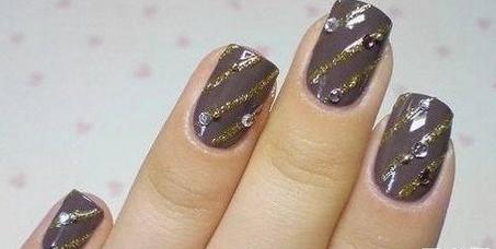 3.用金色帶珠光甲油以斜條紋形式繪畫。