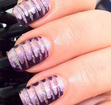 濃情紫色美甲,但不僅限于單一顏色,條紋狀的花紋,感覺(jué)很自然,不像普通條紋那么突兀,在照明燈光下,顯得很有光澤。