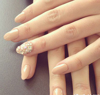 高貴典雅的一款美甲,裸色底色襯出白皮膚,無(wú)名指用水鉆點(diǎn)綴滿,既不會(huì)感覺(jué)單調(diào)又有點(diǎn)睛之筆,頗有名媛氣質(zhì)。