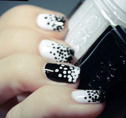 黑白搭配的美甲,白色做底色的話,用黑色小點(diǎn)點(diǎn)做法式感覺(jué),越外端小圓點(diǎn)越密集,是很特別的一款法式美甲。