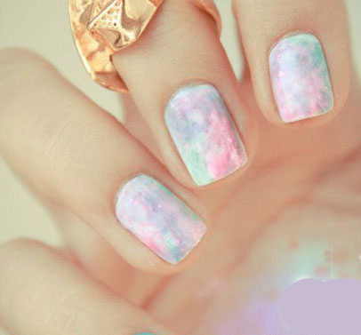 超級(jí)美的一款美甲,漂亮的淡紫色和粉色和藍(lán)色渲染,時(shí)下很流行的星空渲染圖案,畫(huà)在指甲上一樣那么美。