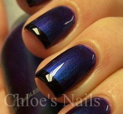 高貴大氣的深藍(lán)色指甲油,帶有隱約的亮粉,前端畫(huà)上黑色的法式美甲,整個(gè)氣質(zhì)提升了許多。