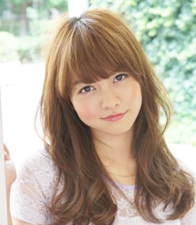 柔順的劉海緊貼額頭,整齊的線條打造出清新的氣質(zhì)。中長的秀發(fā)前伸到肩頭,盈動的卷發(fā)線條活潑又可愛,與可愛的圓臉搭配顯得相得益彰,讓你轉(zhuǎn)眼變成小臉。