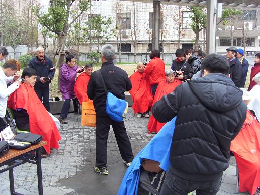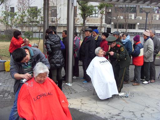 今天是3月5日學雷鋒日,上海新東坊美發(fā)培訓學校的孫老師帶隊來到徐匯區(qū)斜土街道為社區(qū)里的老人免費理發(fā),前來理發(fā)的人絡繹不絕,不一會兒已經排起來長龍。