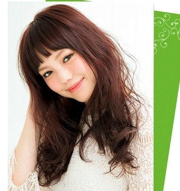 斜劉海搭配深棕色巧克力長發(fā),修出可愛的的小臉,發(fā)色很溫和讓女生看起來粉嫩。
