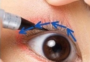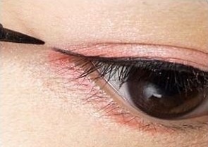 緊貼睫毛的根部,在眼中到眼尾,眼頭到眼中畫出大約1mm的細(xì)長眼線。