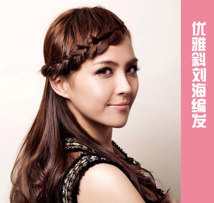 step1:將長劉海從左向右編成精致的三股辮,一直編到發(fā)尾處。