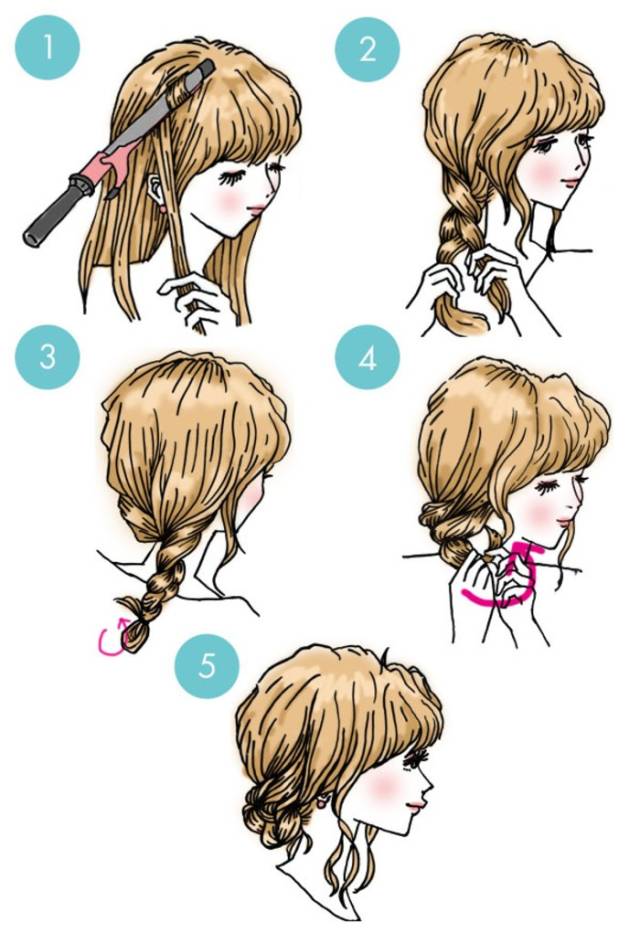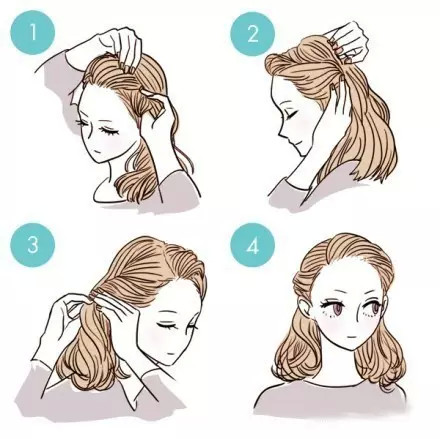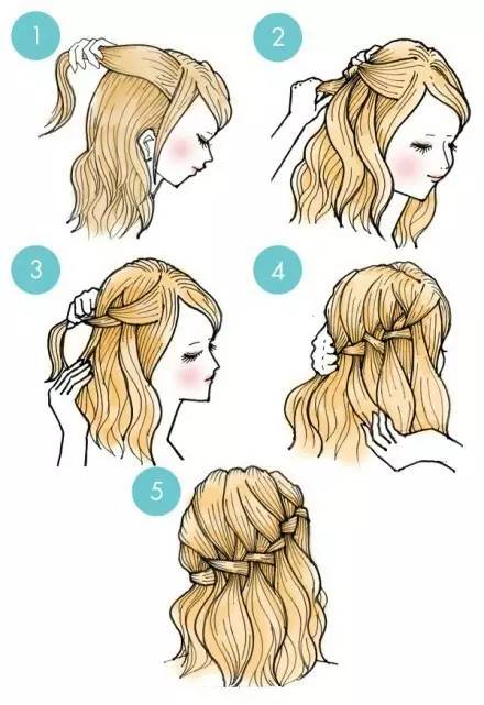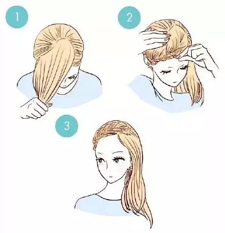 這款發(fā)型乍看起來比較復雜,其實操作起來非常簡單。洗發(fā)后用吹風機吹蓬松,然后按照上圖的手繪教程編發(fā),就可以輕松打造出清新迷人的韓劇女主風。
