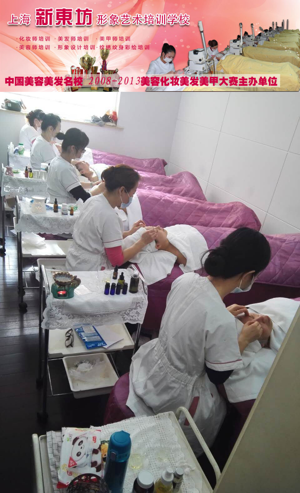 上海新東坊形象藝術(shù)培訓(xùn)學(xué)校是一所專業(yè)的美容,美發(fā),美甲,化妝,形象設(shè)計(jì)的專業(yè)培訓(xùn)學(xué)校。學(xué)校成立20對(duì)年,學(xué)校秉承活力,優(yōu)質(zhì),杰出的辦學(xué)理念,貫徹學(xué)力,實(shí)力,愿力的教學(xué)方針,以術(shù)德雙修,手腦并用德智體群美五育并重為教學(xué)宗旨,培養(yǎng)高技能專業(yè)性與實(shí)用性人才。