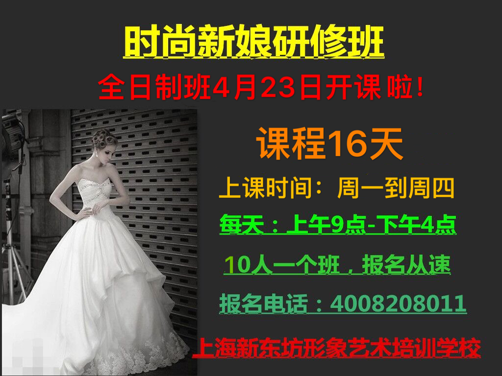 【時(shí)尚新娘研修班】平日班4月23日開(kāi)課
