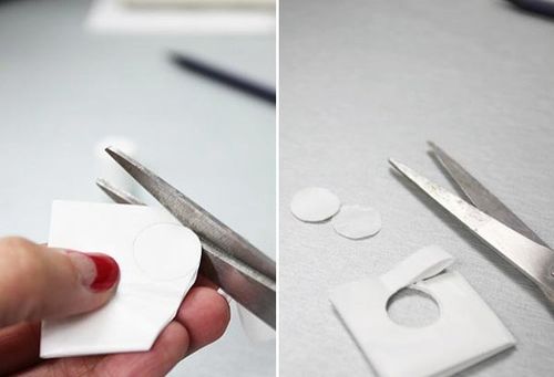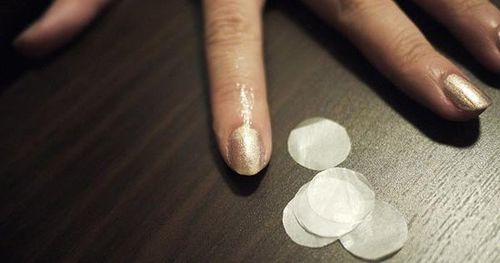 如果你有圓形的美甲貼片,這一步就可以省略掉。如果你沒(méi)有的話,用吸油面紙能很方便的做出一次性的貼片。