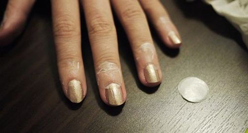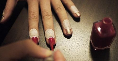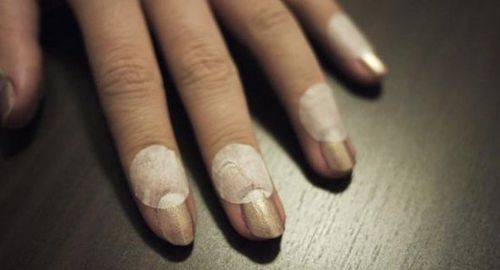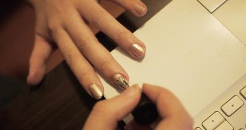 圖1:涂抹第二遍金色甲油