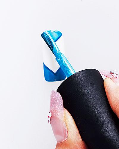 第五步:用鑷子在指甲頂部粘上銀色五角星;