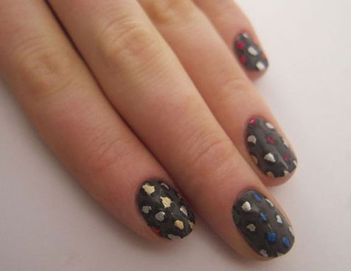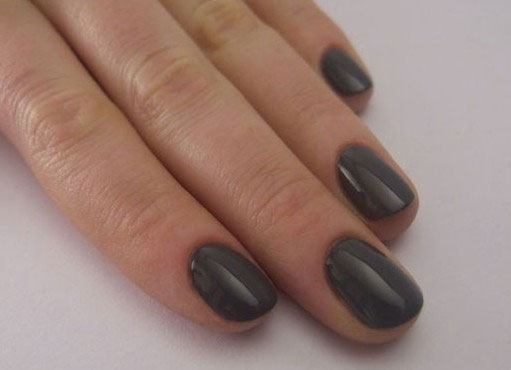 步驟二:涂上深灰色指甲油,噴上快干噴霧,稍等一會兒。
