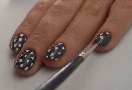 步驟三:為了讓接下來的豹紋斑點能在指甲上更顯色,你要先將白色的甲油點在指甲上。