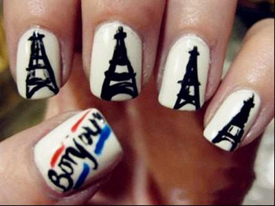第二款:像不像巴黎的埃菲爾鐵塔呢?米白色襯底+涂鴉式的鐵塔,沒(méi)去過(guò)巴黎的,可以先用這款美甲過(guò)過(guò)癮哦!